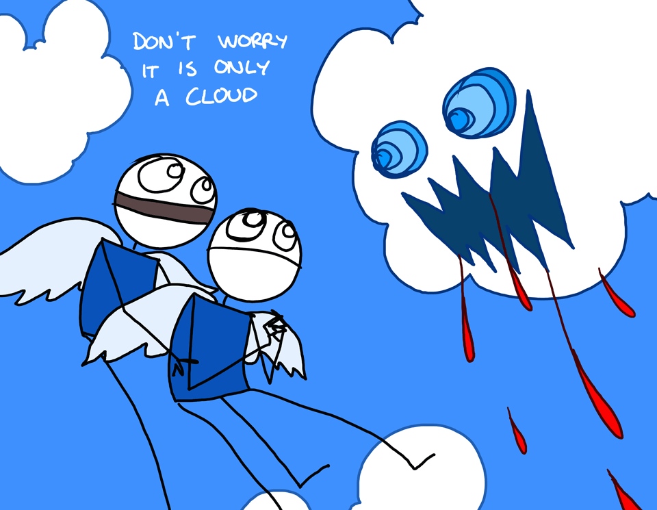 ‘Don’t worry it’s only a cloud’ drawing by sam brown, explodingdog.